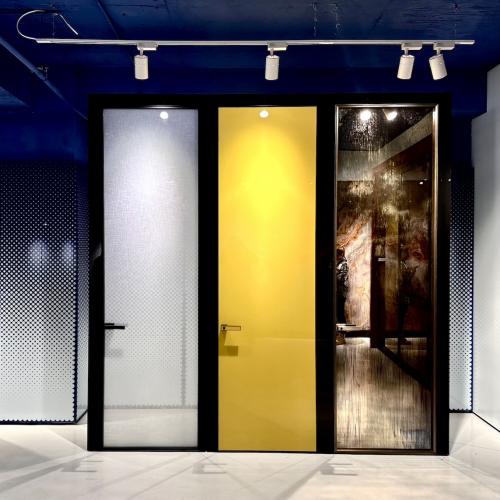 Glasstech tərəfindən istehsal olunan və quraşdırılan bu qapı növləri əsasən kənarı aluminium çərçivəlli qapılardır. Qapı şüşəsi olaraq Glasstech məhsul kataloqundaki şəffaf şüşələrdən başlayaraq dekorativ şüşələrin hər biri rahatllıqla istifadə olunur. Bu qapı növlərində son illərin trendi olan parça teksturalı şüşələr alıcılar tərəfindən çox böyük maraq görür.