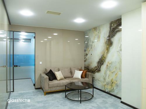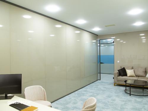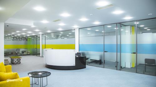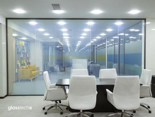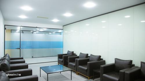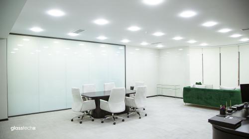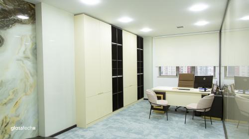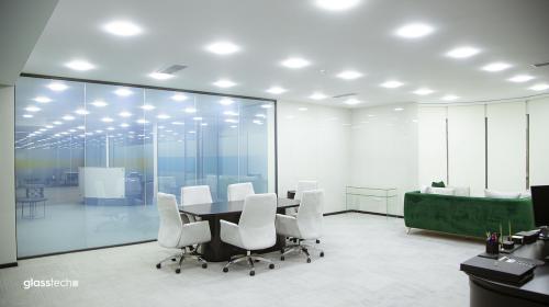 - Müdir otağı smartglass (ağıllı şüşə), səs keçirməz və temperli ofis arakəsmə