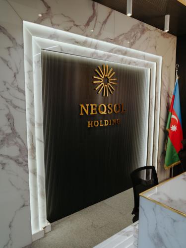 Qeyd olunan layihəmiz Glasstech-in ən görkəmli işlərindən biri olaraq qəbul olunur. Neqsol Holdingin baş ofis girişində reception masa üzləməsi və eyni zamanda divar üzləmə ilə ofis şüşə arakəsmə kənarlarında divar üzləməsi olaraq tədbiq olunmuşdur. Kalakatta mərmər (Calacatta marble) daşı olaraq bilinən mərmər teksturasını ekstra clear şüşə içərisində tədbiq edilmişdir. Bu şüşə növümüz eyni zamanda həm temperli həm də laminə (tripleks, laminated glass) olunaraq istehsal olunmuşdur.