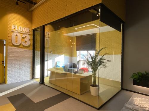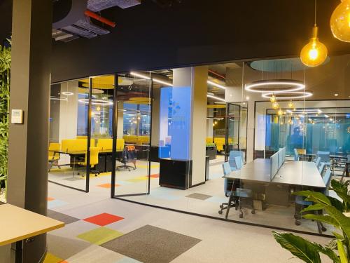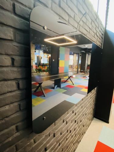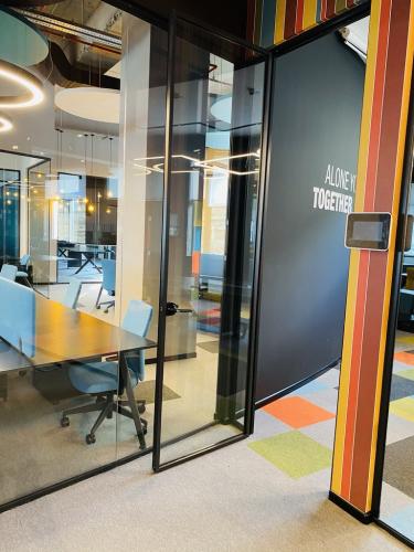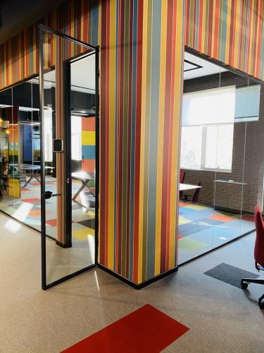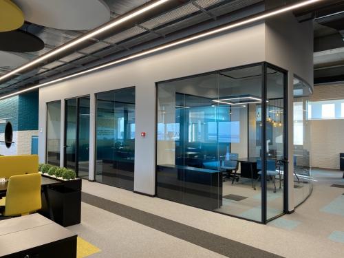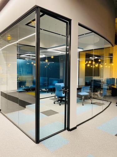 Hər bir ofisə müasirlik, praktiklik və funksionallıq qatmaq üçün memarın tələbi üzrə qara rəngli temperli xüsusi lamine şüşələr istehsal olunaraq divarlara quraşdırılmışdır. Şüşələr üzərində rahatlıqla qeydlər aparmaq və daha sonra asanlıqla onları silmək mümkündür.