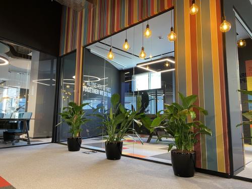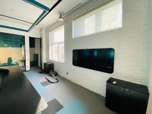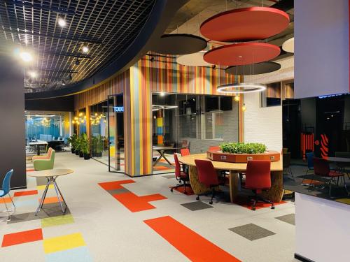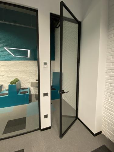 Loft dizayn üslubu düşünüldüyü üçün profillər toz boya ilə qara rəngə boyanmış və quraşdırılmışdır. Məkana şəffaflıq efektini vermək üçün profillər zərif görüntülü xüsusi ofis bölmə seriyasından hazırlanmışdır.
