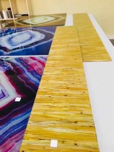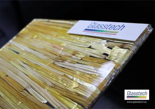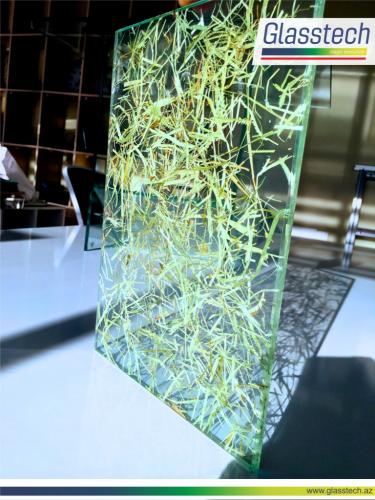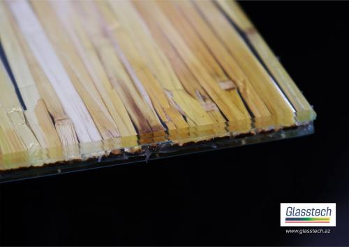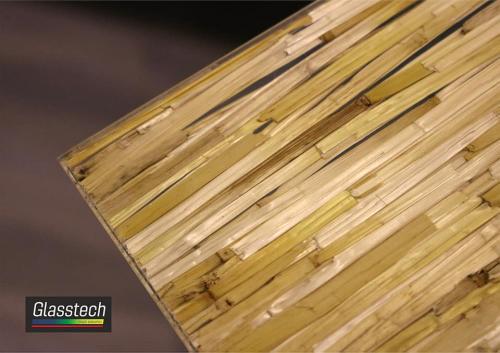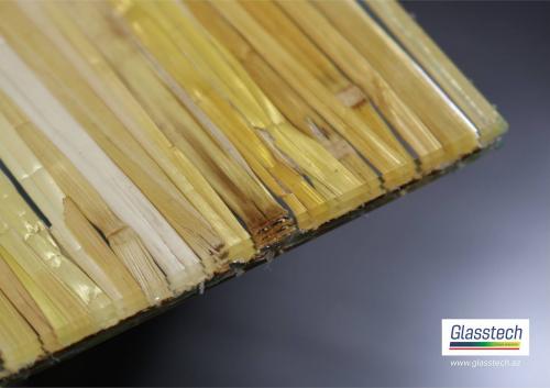 Следующая серия декоративного стекла- растение в стекле. Процесс изготовления стекла с органической текстурой проходит несколько интересных этапов. Поместив натуральное растение между двумя закалёнными стёклами, стекло запекается и происходит процесс триплекса (ламинирование). Для получения лучшего эффекта часто в растения вноситься особые изменения. Например, кожура каждой соломинки очищается и помещается по специальному порядку, чтобы солома выглядела живой и эффективной.
