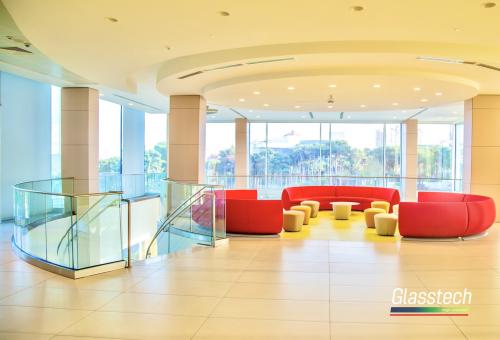 Как компания Glasstech, мы завершили ещё один проект в университете ADA. Основная задача в этом проекте, поставленная перед нами со стороны заказчика, заключалась в установке скрученных стеклянных перил шириной 10 мм внутри бетона, а также установка ручки из нержавеющей стали на стеклянных перилах. С техническими характеристиками материалов использованных в проекте, вы можете ознакомиться ниже:
